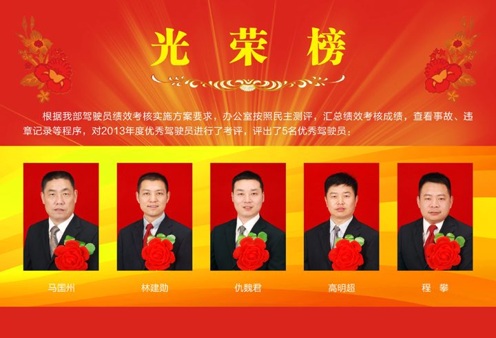 2013年度部機(jī)關(guān)駕駛員光榮榜