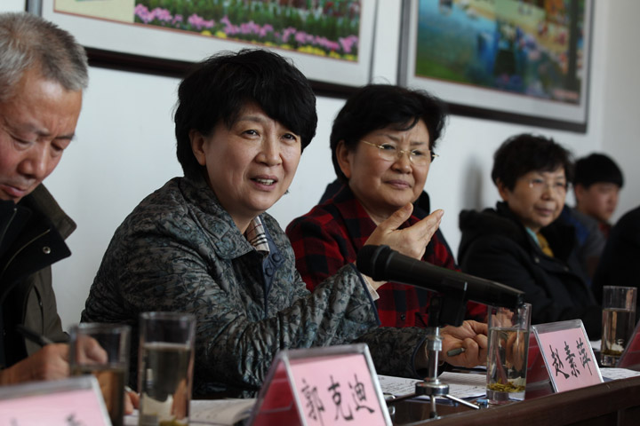 座談會前,趙素萍帶領藝術家們走訪當?shù)厝罕?,了解當年楊蘭春創(chuàng)作《朝陽溝》的詳細過程和感人故事,并參觀了楊蘭春文化園,向楊蘭春墓敬獻了花籃。