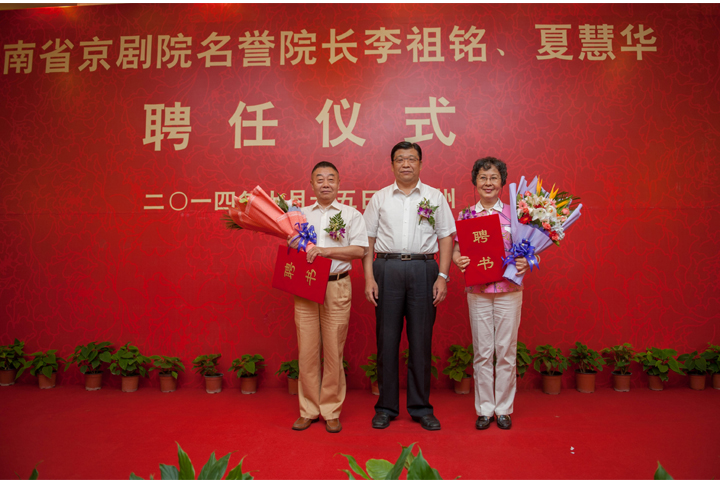 7月15日,省委常委、宣傳部長(zhǎng)趙素萍,副省長(zhǎng)張廣智等領(lǐng)導(dǎo)出席河南省京劇院名譽(yù)院長(zhǎng)李祖銘、夏慧華聘任儀式。