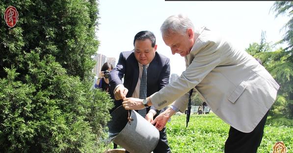 隨后,在易園舉行的共植友誼樹活動上,馬林青發(fā)表了熱情洋溢的致辭。他說,共植友誼樹,情深萬年長。這片蒼翠繁茂的國際友好交往紀(jì)念林,見證了安陽與加拿大萊橋市、韓國安養(yǎng)市等多個國際友好城市的交往合作。此次我們共同種植下第十四棵友誼樹,相信在大家的共同呵護(hù)下,中法友誼之樹必將根深葉茂、萬古長青。阿蘭·拉巴特,法中友協(xié)聯(lián)合會秘書長、弗朗什—孔泰中國友協(xié)主席阿蘭·嘉寶賀喜,南特—大西洋中國友協(xié)主席愛德蒙·博雷,雷恩中國友協(xié)主席玫雅琳等紛紛發(fā)言,共同表示,將努力為深化中法兩國人民友誼作出更大的貢獻(xiàn)。
