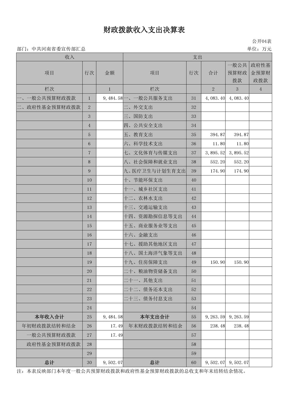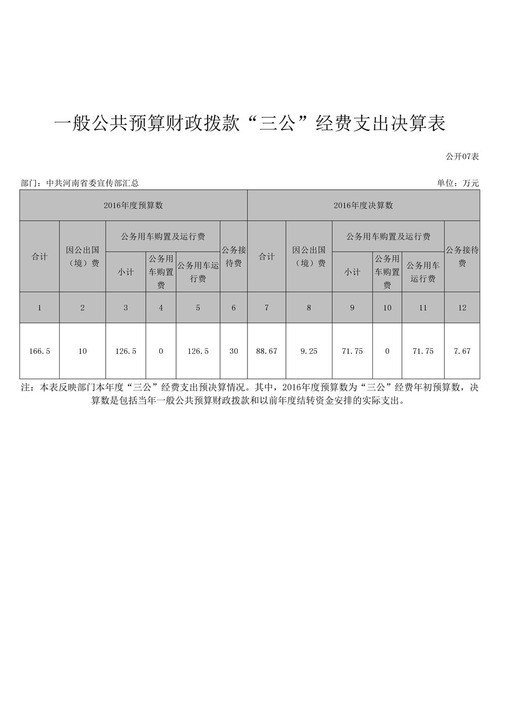2016年度河南省委宣傳部部門決算公開