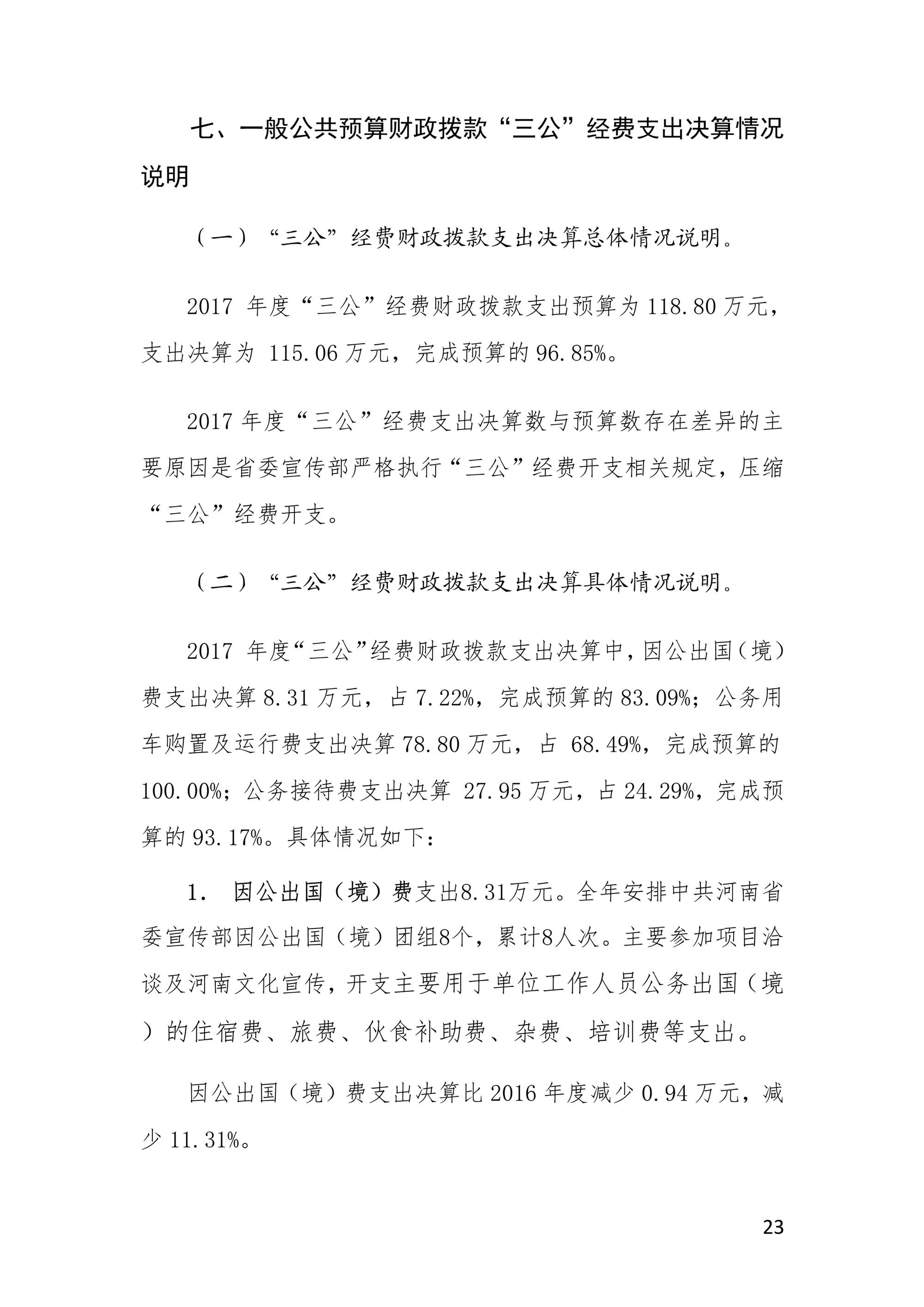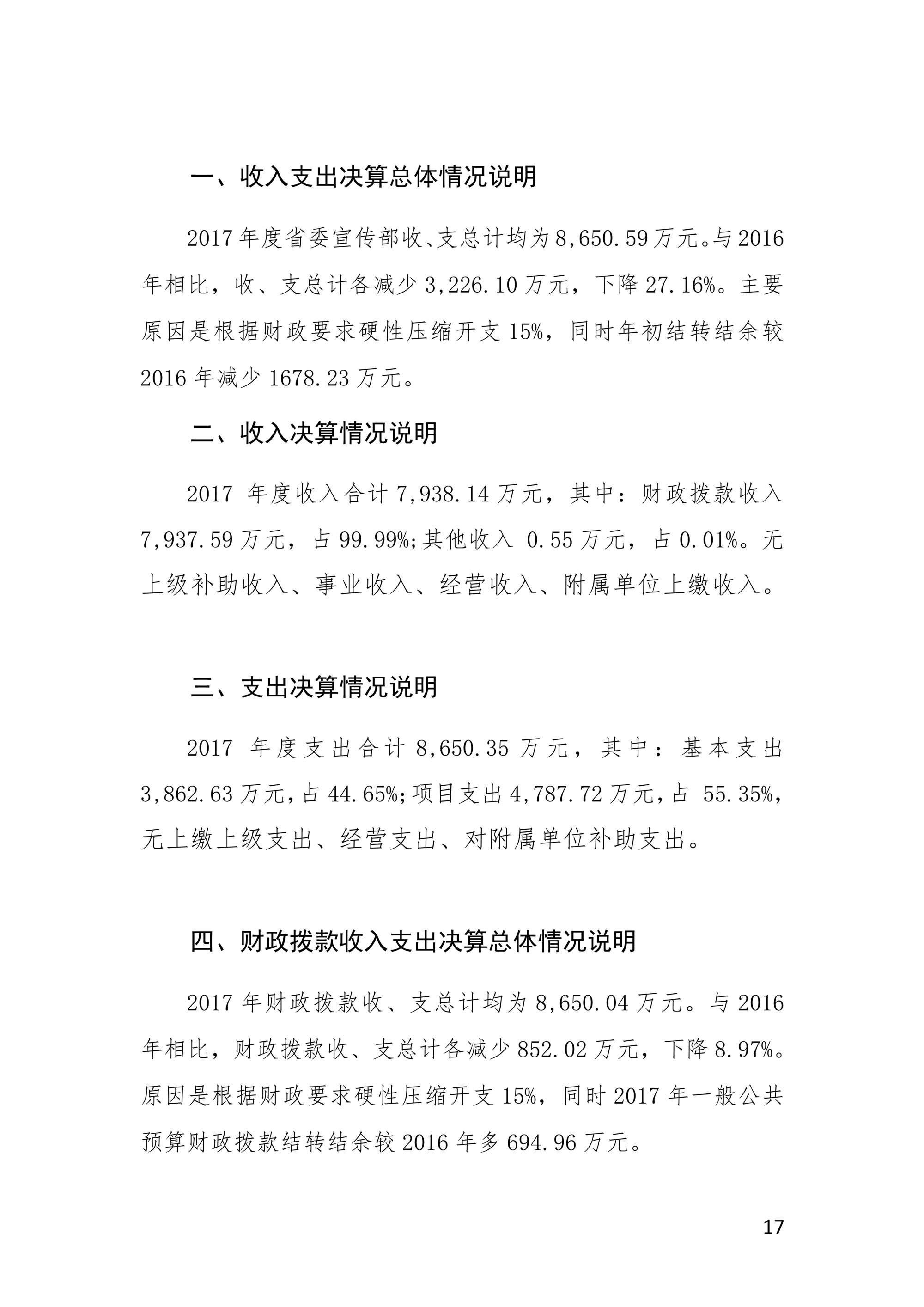2017年度中共河南省委宣傳部部門決算公開